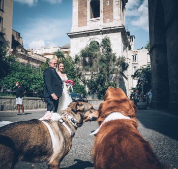 Per molti sposi che si sposano nelle città della regione Campania, l’idea di far portare le fedi al proprio cane è uno dei momenti più emozionanti dell’intera giornata. Che si tratti di una cerimonia elegante a Napoli, magari in una chiesa affollata o a Posillipo con vista mare, di un matrimonio in una villa storica nel Casertano o di una cerimonia all’aperto in Costiera Amalfitana o a Salerno, l’immagine è sempre la stessa: il cane che accompagna gli sposi in uno dei gesti più simbolici.