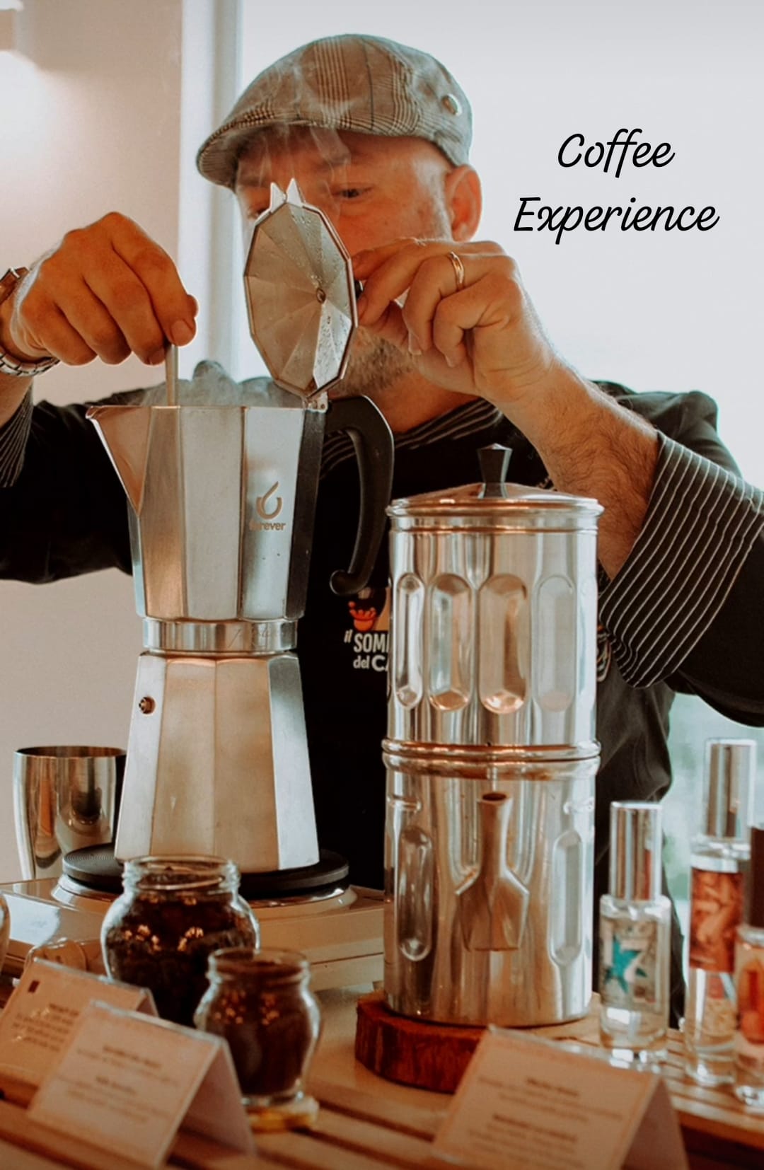 E’ un angolo di antica tradizione Napoletana che va a completare qualsiasi cerimonia dove gli ospiti presenti vengono portati in un percorso di degustazione sia alle papille gustative che olfattive per un’esperienza indimenticabile. Si susseguono così varie tipologie e somministrazione di caffè a monorigini. Associate alle nebulizzazioni delle fragranze alla vaniglia mandorlata, anice stellato, grappa di Fiano di Avellino barricata e alla cannella.