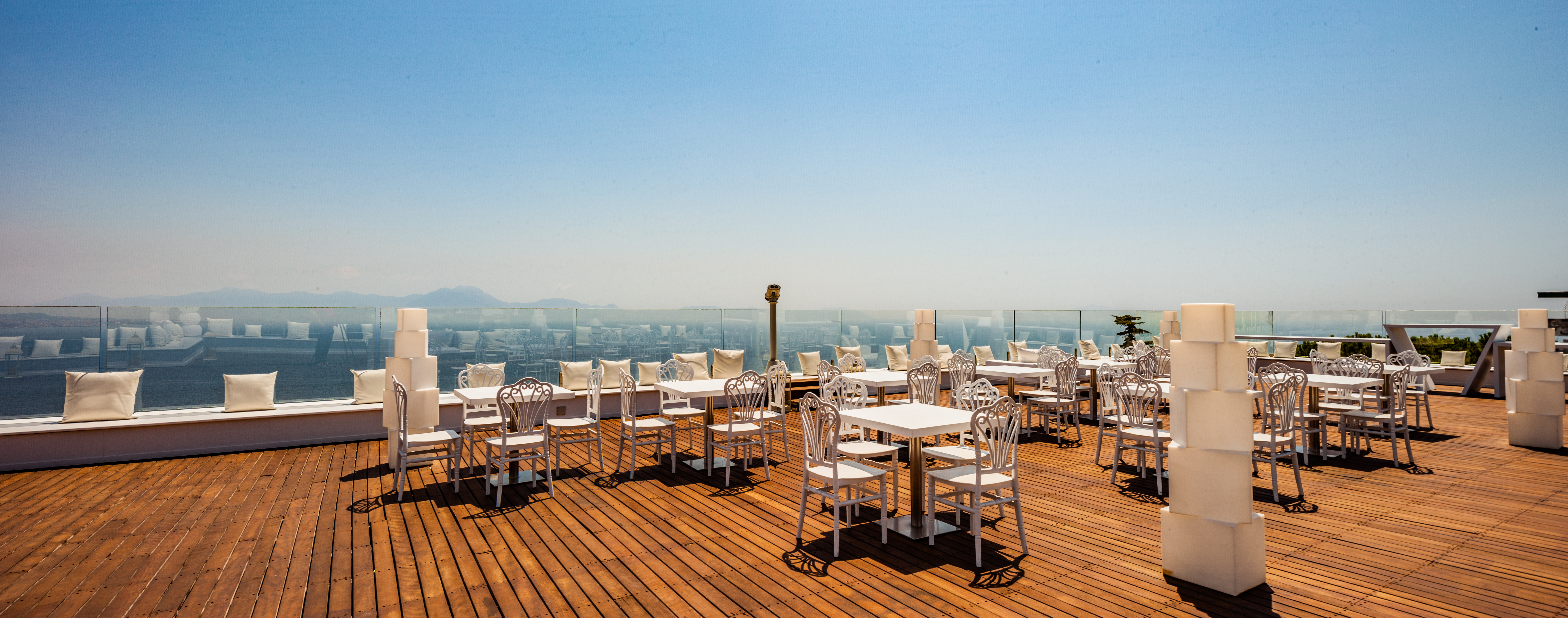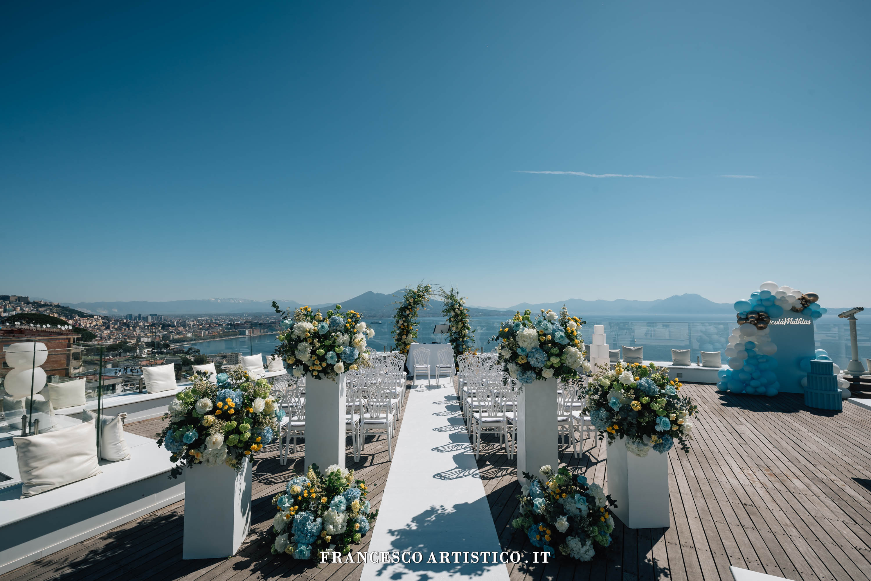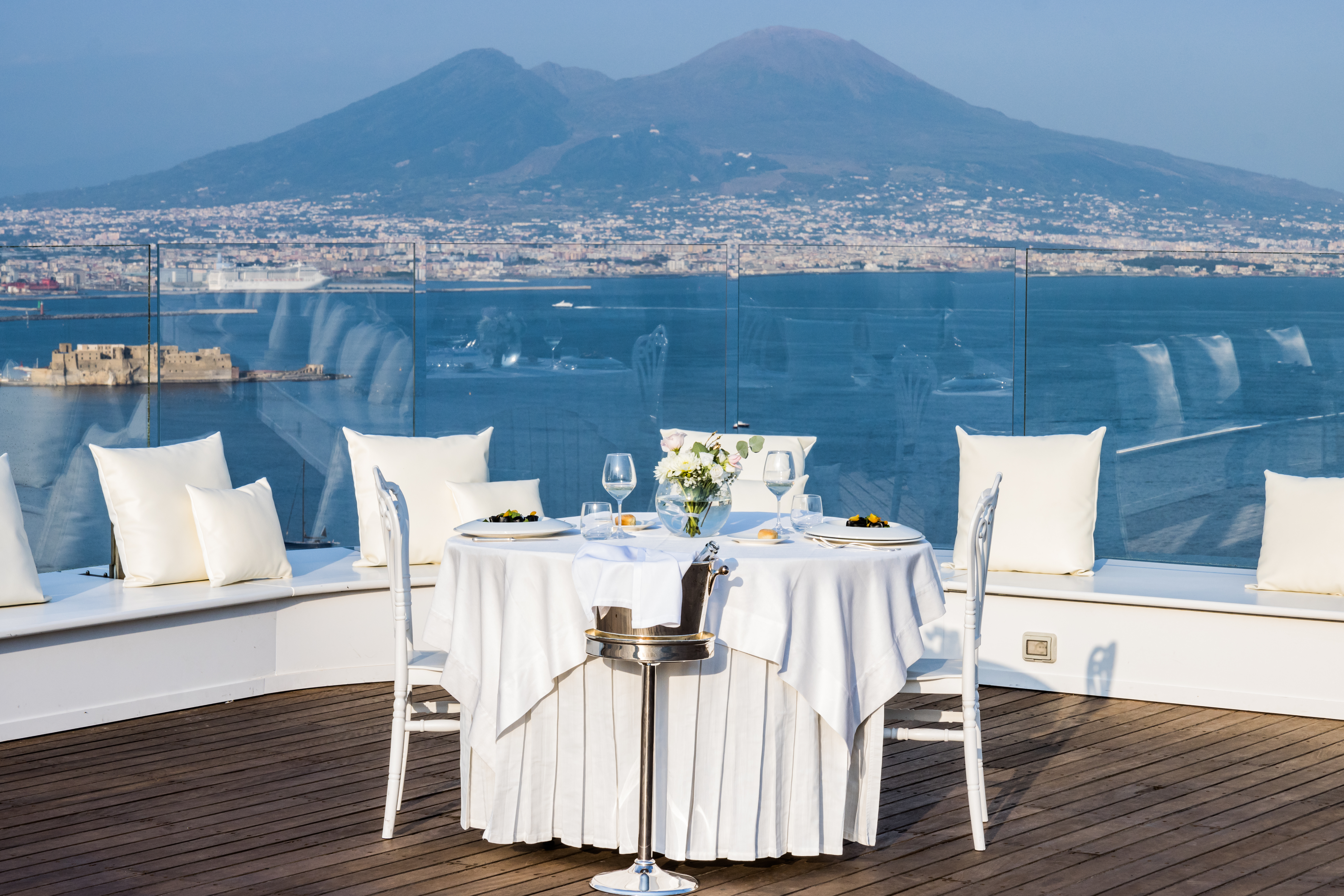 Qui, lo spazio non è mai solo architettura, ma esperienza: le ampie sale interne, luminose e versatili, si aprono verso l’esterno regalando scorci indimenticabili sul Golfo di Napoli. Trasformando ogni evento in un momento scenografico di grande impatto. La Sala Diamante e la Sala Rubino accolgono gli ospiti in ambienti eleganti e panoramici. Mentre il D Restaurant, più intimo e raccolto, offre un’atmosfera riservata arricchita da un giardino curato e da una raffinata zona lounge. All’esterno, la natura diventa protagonista: l’area verde si distingue per il suo equilibrio cromatico, tra il rigoglio della vegetazione, le delicate sfumature floreali e l’azzurro intenso del mare che si estende all’orizzonte, creando una cornice di rara suggestione.
