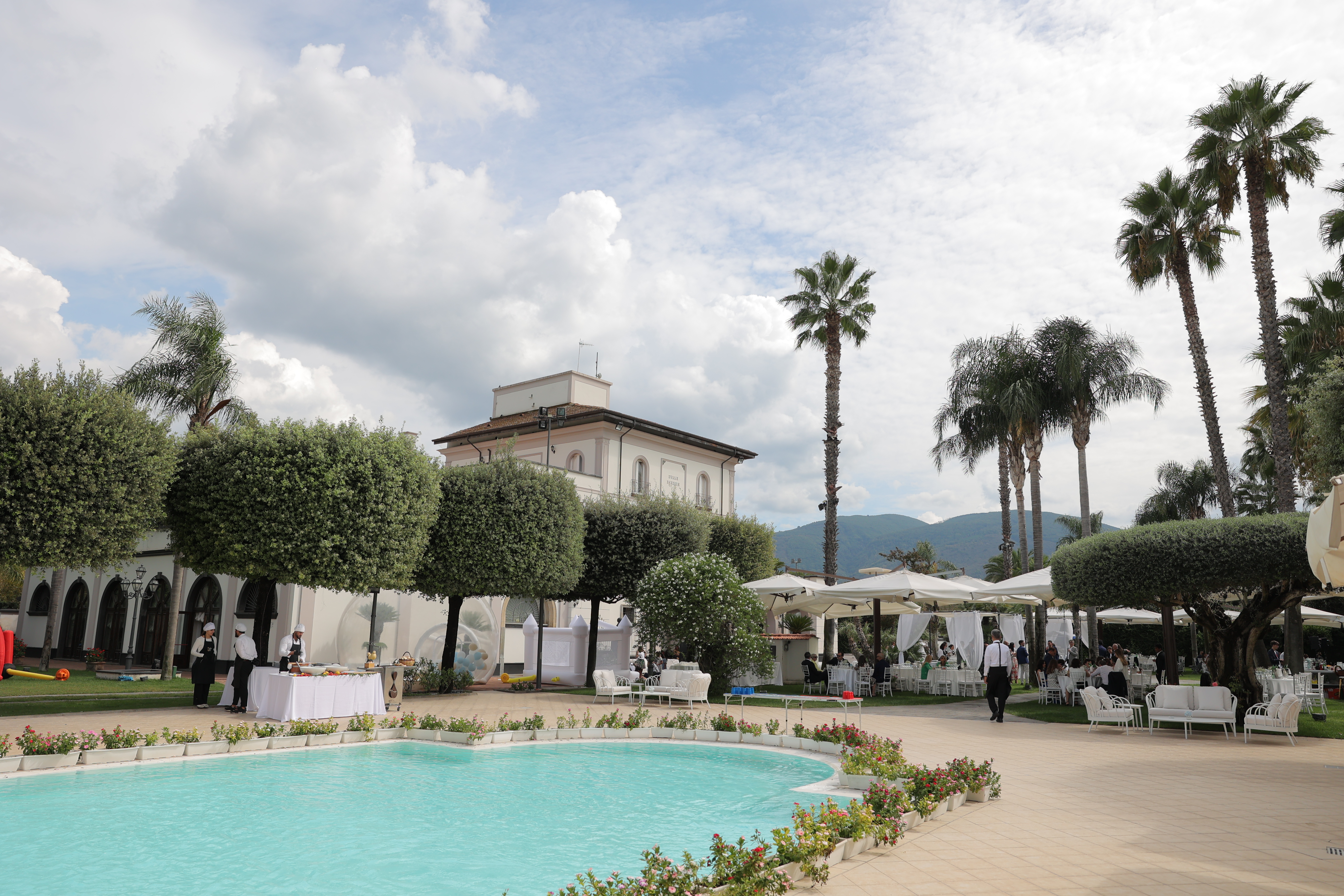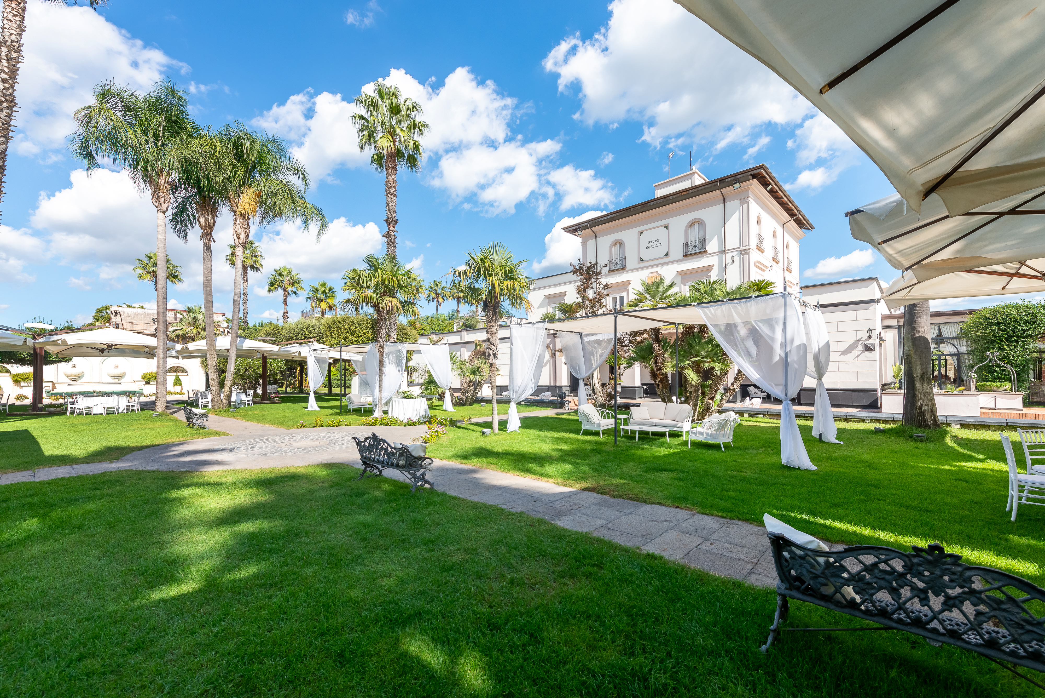 Villa Feanda – E’ una struttura settecentesca immersa nel verde lussureggiante. Un ambiente elegante ed un servizio professionale trasformerà il vostro sogno nuziale in una magica realtà. Villa Feanda Eventi è la location per eccellenza che vi permetterà di vivere una favola. Situata a Nola dove si sviluppa un viaggio sensoriale unico tra la bellezza e il fascino della location, unita alla raffinatezza culinaria.