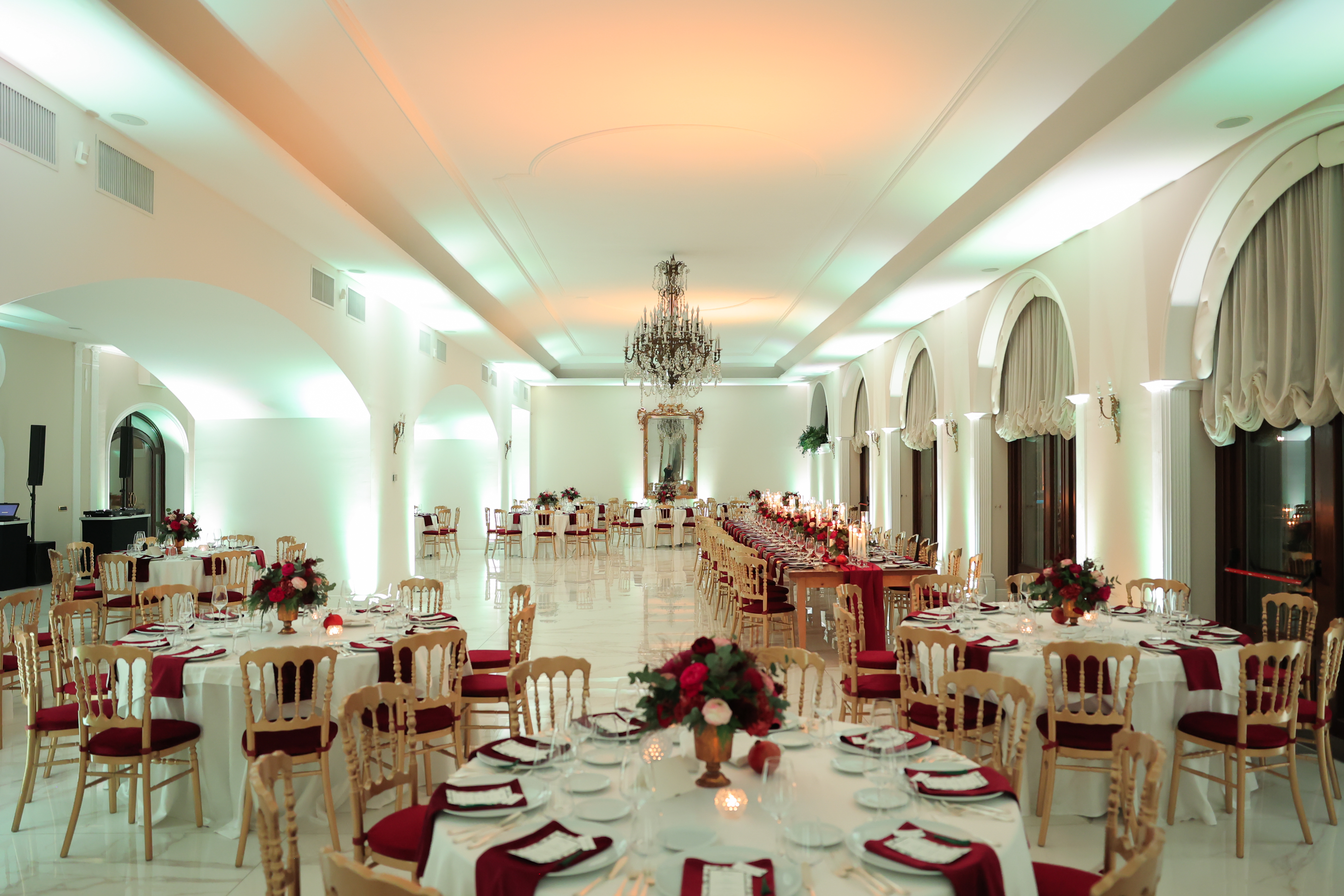 Giardini immensi e sale interne offrono agli sposi la possibilità di vivere il loro sogno nuziale in una cornice perfetta. Nel complesso della dimora si troveranno variegati ambienti: